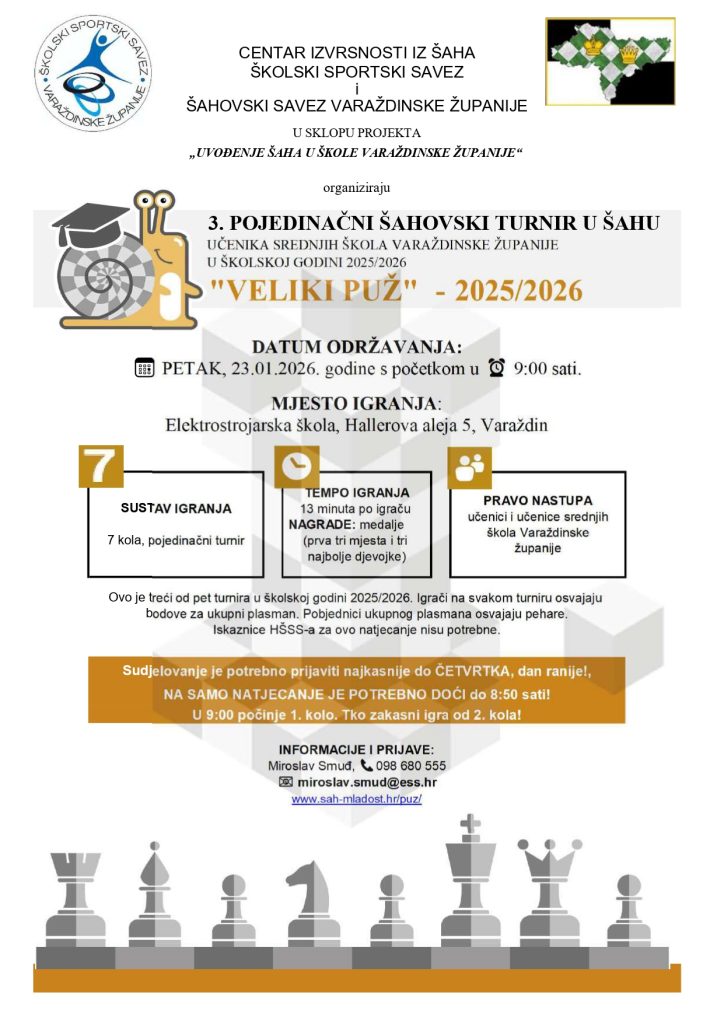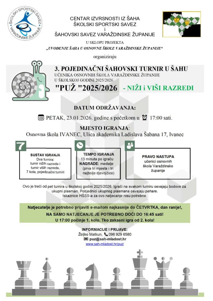 – osnovne škole – 23. siječnja/ PETAK u 17:00 sati, osnovna škola IVANEC – prijavana e-mail puz@sah-mladost.hr
