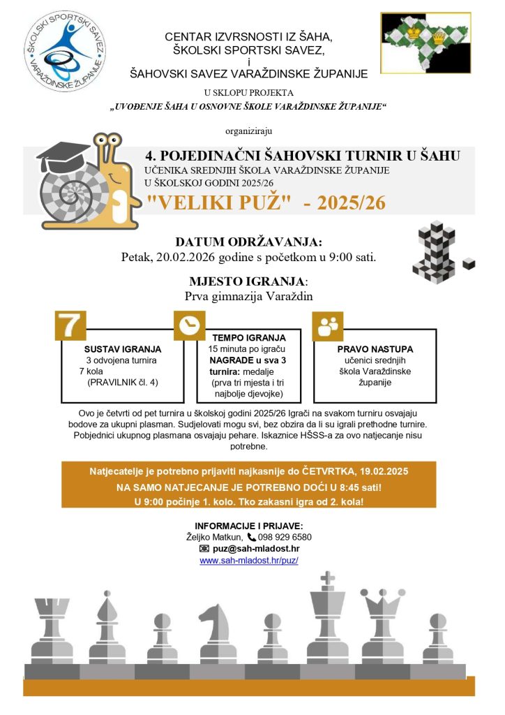 raspisi za četvrte šahovske turnire “PUŽ”-a  (od pet) u ovoj školskoj godini